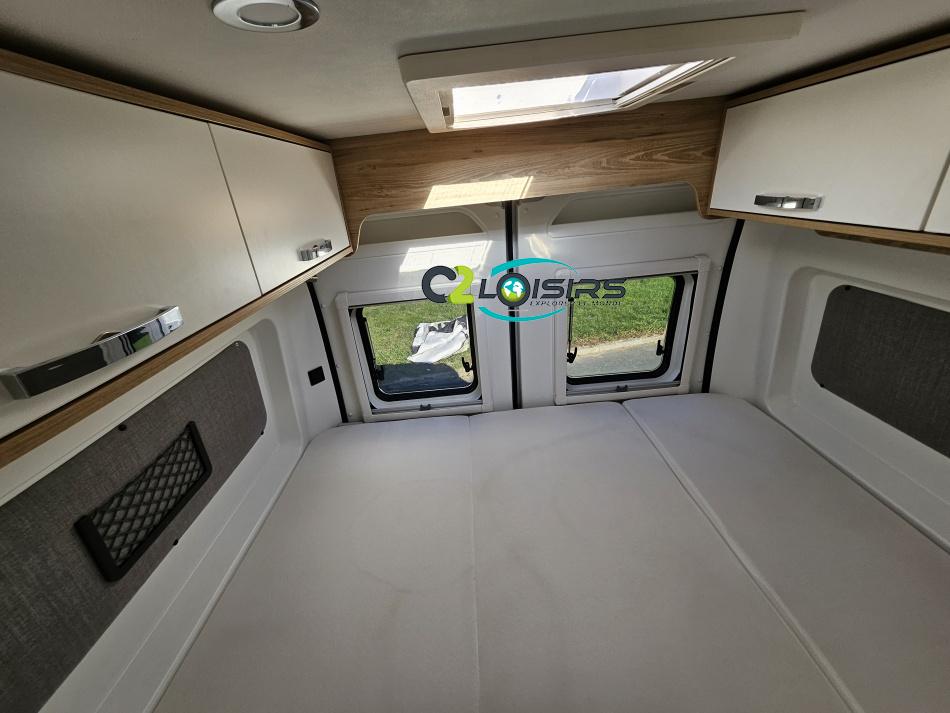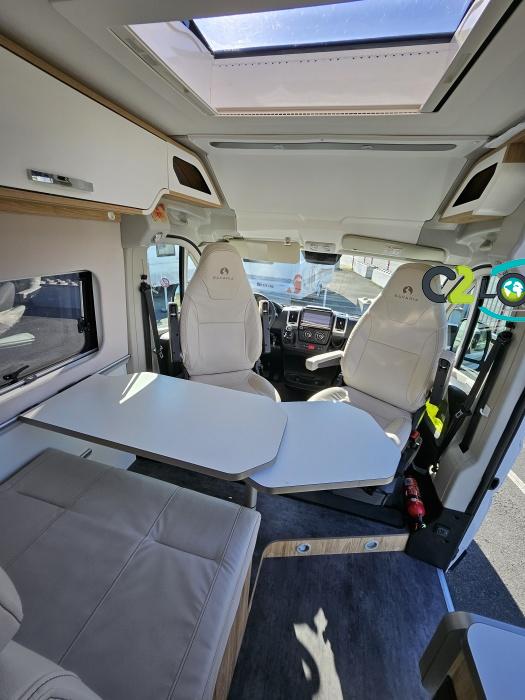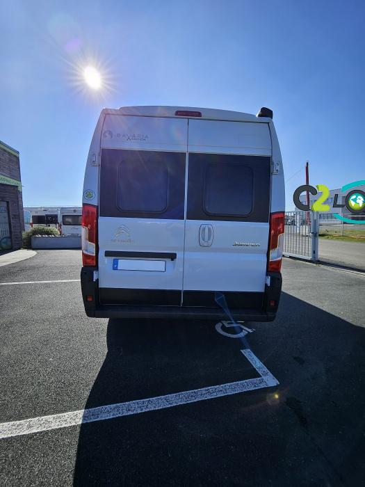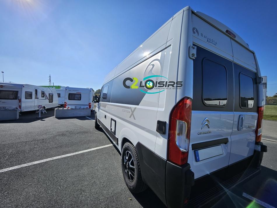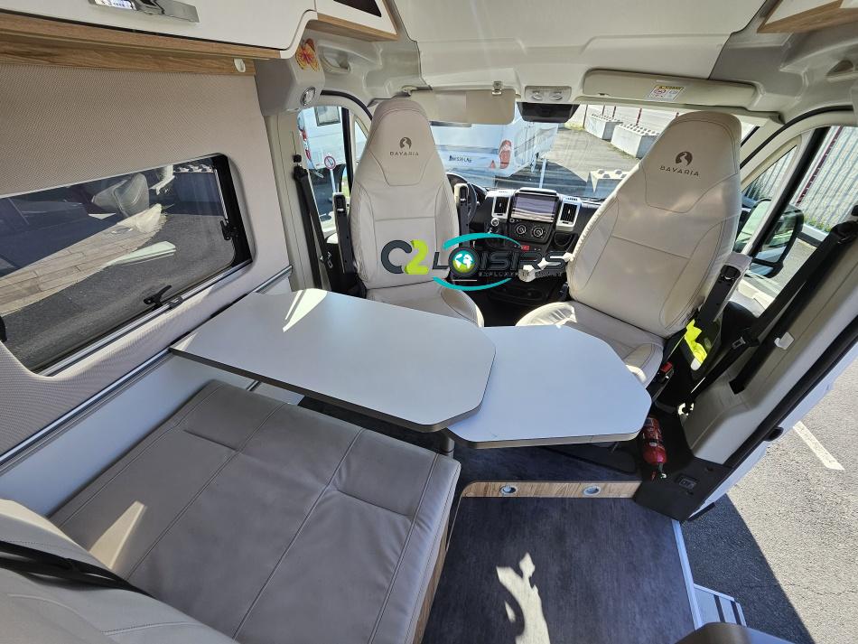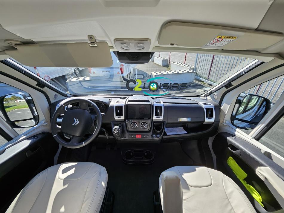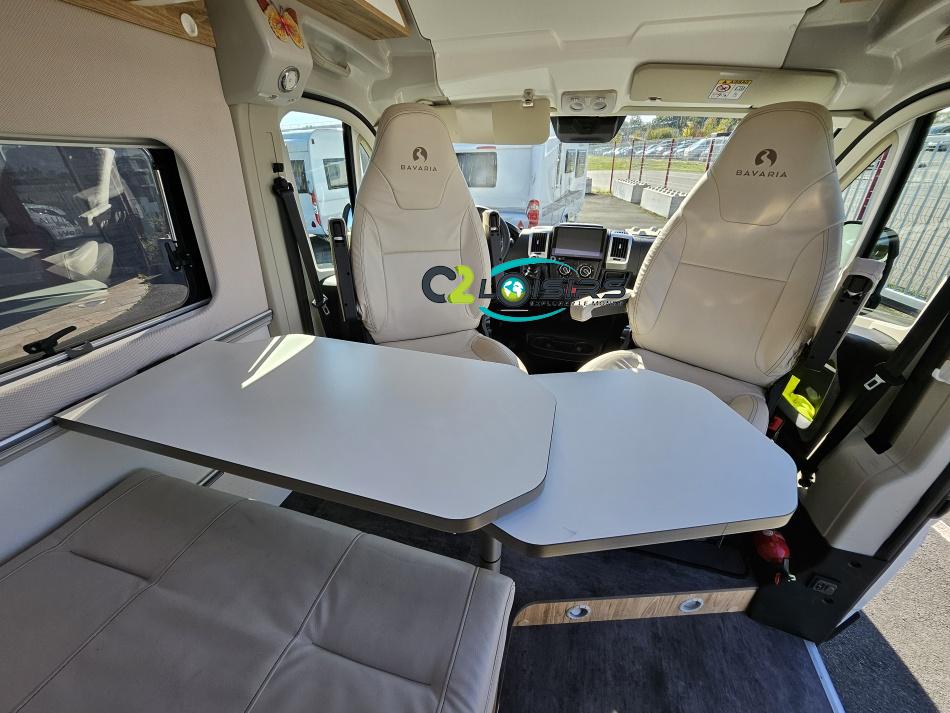 BAVARIA K600 X-EDITION PORTEUR Motorisation 2,2 L - 140 ch - Boîte mécanique - Châssis 3500 kg Light - Jantes aluminium de 16'' - Airbags conducteur et passager - ABS : antiblocage des roues au freinage Rétroviseurs électriques et dégivrants avec grand angle et angle mort - Kit anti-crevaison - Pneumatiques 4 saisons (avec flocon) - Réservoir diesel 90L - Commandes au volant - Climatisation manuelle de la cabine - Régulateur et limiteur de vitesse - Peinture de carrosserie non métallisée : blanc - Feux diurnes halogènes - Pare-chocs avant et arrière non peint - Cerclage des optiques noir IMPLANTATION AMENAGEMENT INTERIEUR : Lit transversal 2 places. Lit dinette 1 places. Salle de bain et toilette non séparés (WC coulissant offrant la plus grande douche du marché). Moustiquaires + stores occultants. Siège conducteur et passager pivotants OPTIONS Store banne extérieur - Marche pied électrique - caméra de recul - tv LCD – parabole automatique – panneaux solaire 100w – douchette – moustiquaire de porte latéral INFORMATIONS UTILES Longueur 5,99 m Largeur 2,05 m Hauteur 2,67 m Places assises 4 Places repas 4 Places couchages 2 - Charge utile 650 kg - Multimédia Pionner Apple car // Android Auto - Frigo à compression 12v 138 L - Chauffage Gaz Truma