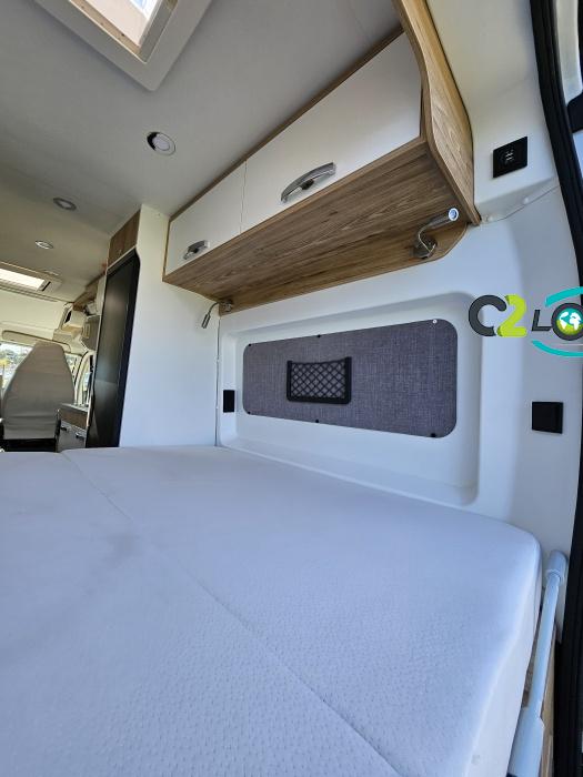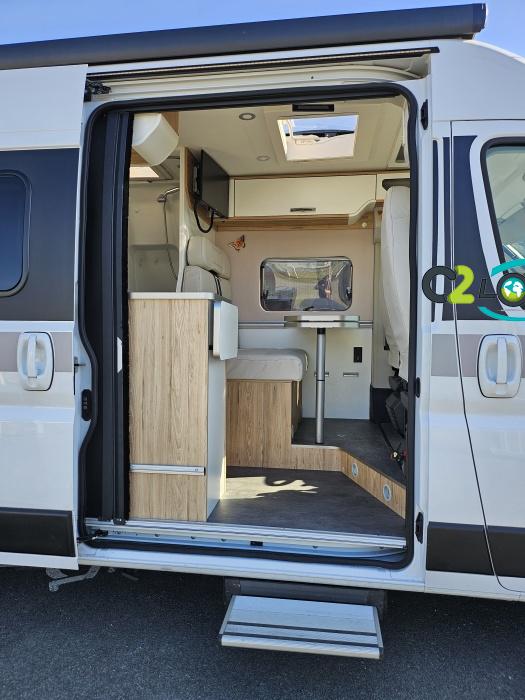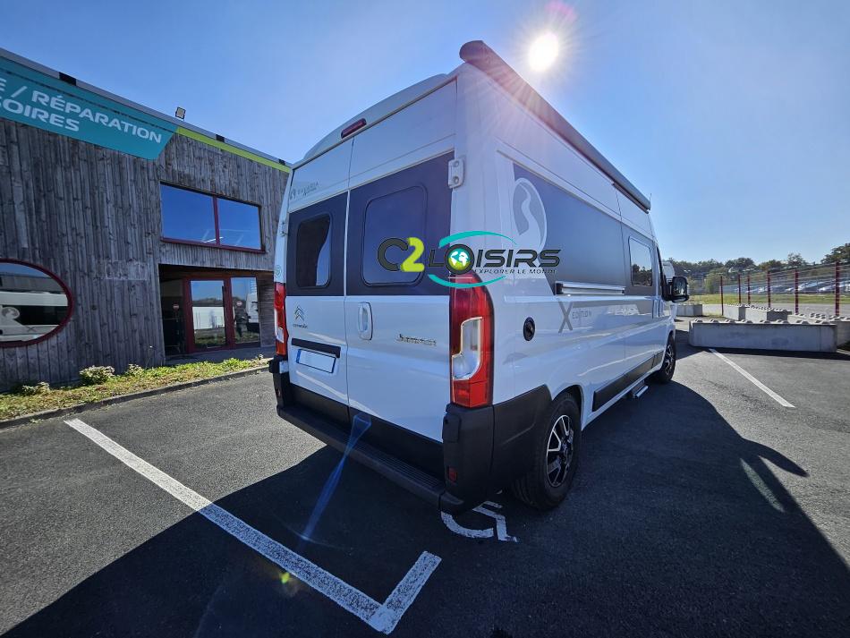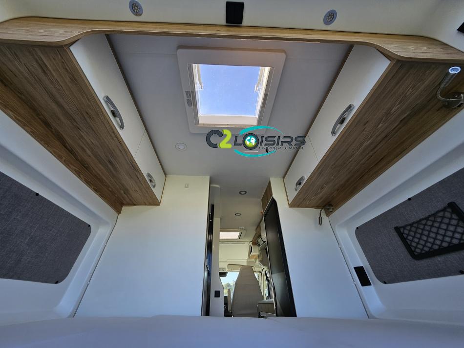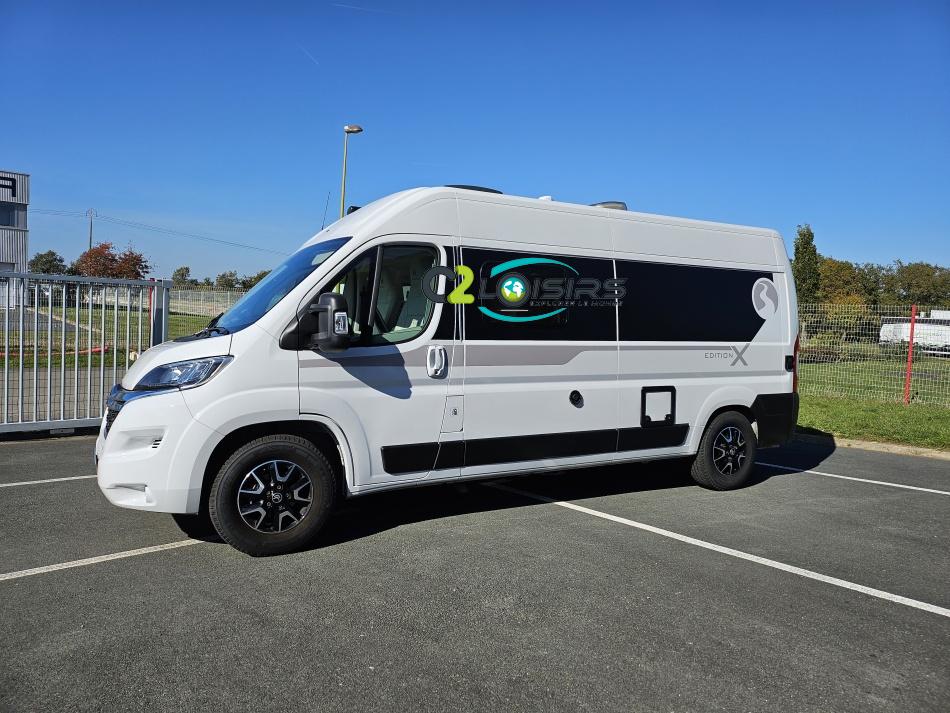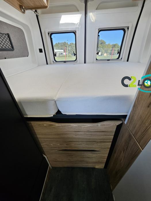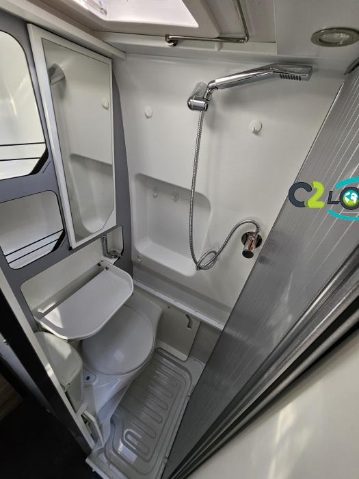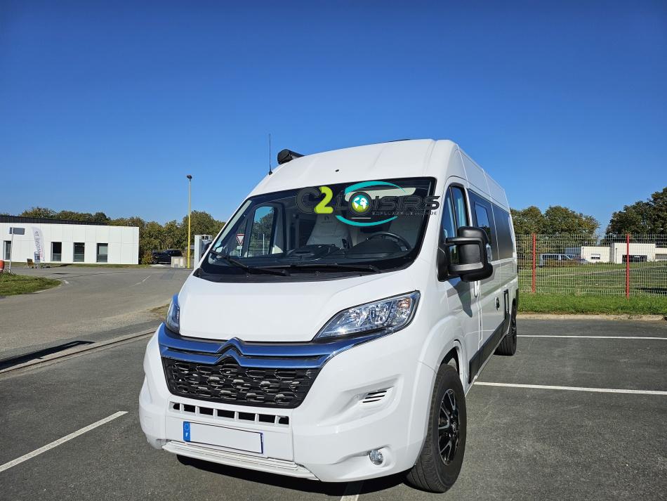 BAVARIA K600 X-EDITION PORTEUR Motorisation 2,2 L - 140 ch - Boîte mécanique - Châssis 3500 kg Light - Jantes aluminium de 16'' - Airbags conducteur et passager - ABS : antiblocage des roues au freinage Rétroviseurs électriques et dégivrants avec grand angle et angle mort - Kit anti-crevaison - Pneumatiques 4 saisons (avec flocon) - Réservoir diesel 90L - Commandes au volant - Climatisation manuelle de la cabine - Régulateur et limiteur de vitesse - Peinture de carrosserie non métallisée : blanc - Feux diurnes halogènes - Pare-chocs avant et arrière non peint - Cerclage des optiques noir IMPLANTATION AMENAGEMENT INTERIEUR : Lit transversal 2 places. Lit dinette 1 places. Salle de bain et toilette non séparés (WC coulissant offrant la plus grande douche du marché). Moustiquaires + stores occultants. Siège conducteur et passager pivotants OPTIONS Store banne extérieur - Marche pied électrique - caméra de recul - tv LCD – parabole automatique – panneaux solaire 100w – douchette – moustiquaire de porte latéral INFORMATIONS UTILES Longueur 5,99 m Largeur 2,05 m Hauteur 2,67 m Places assises 4 Places repas 4 Places couchages 2 - Charge utile 650 kg - Multimédia Pionner Apple car // Android Auto - Frigo à compression 12v 138 L - Chauffage Gaz Truma