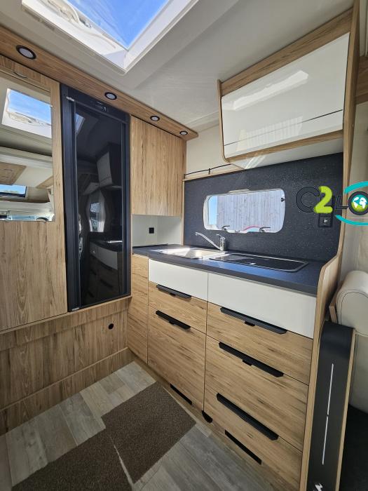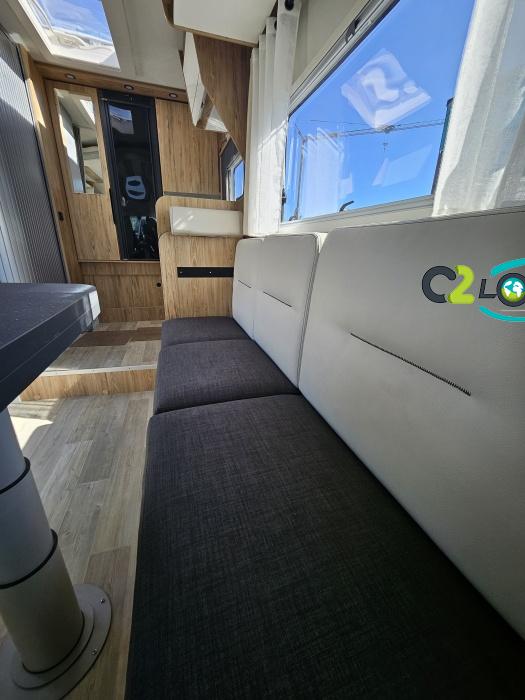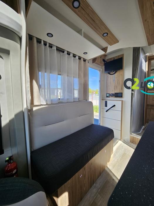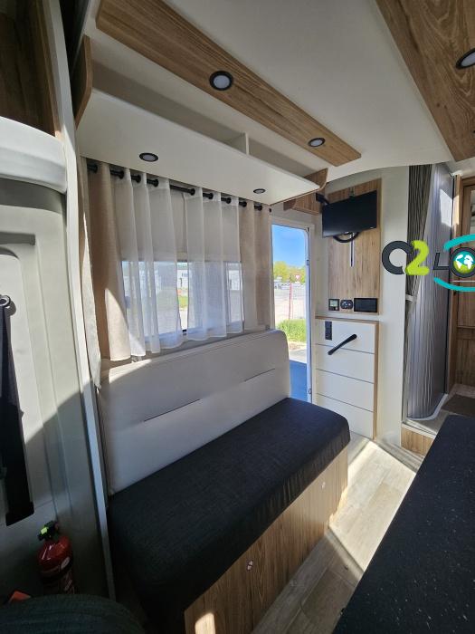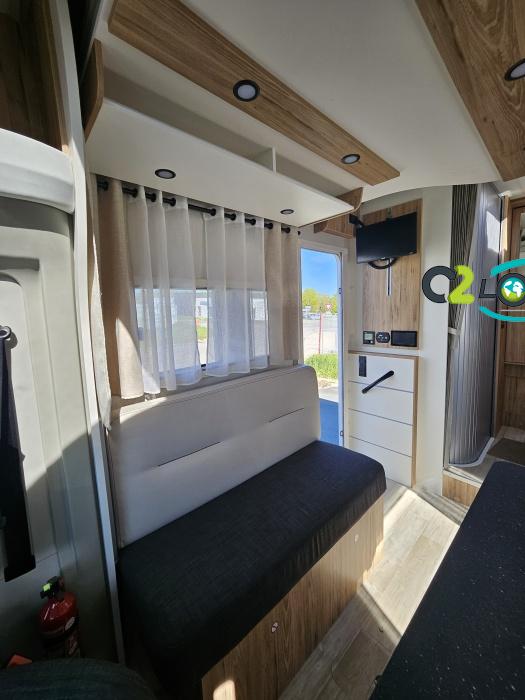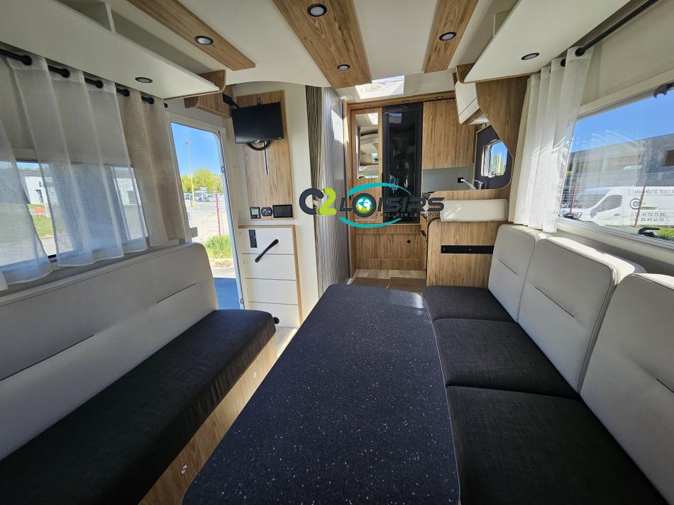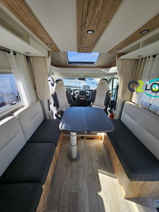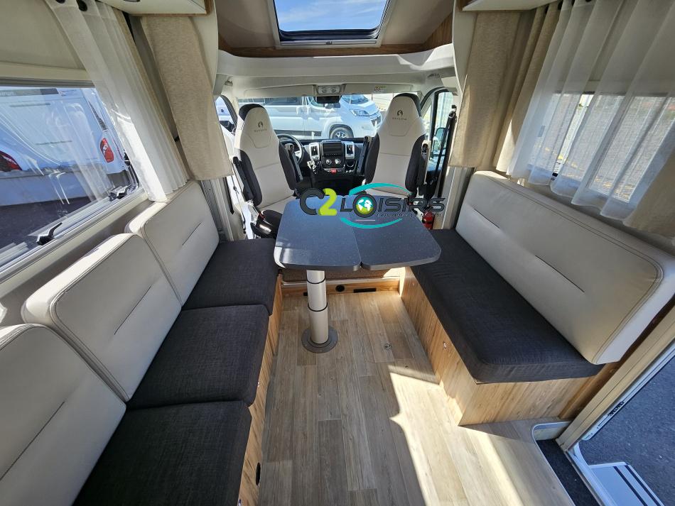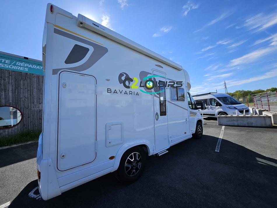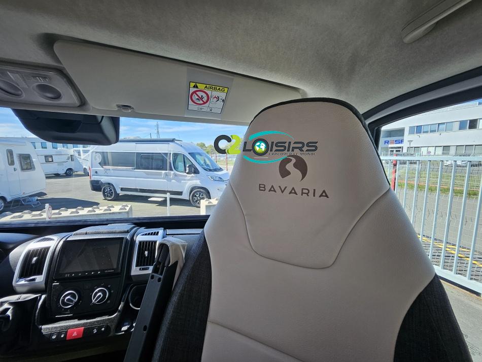 AMENAGEMENT INTERIEUR : Lit pavillon 2 places. Lit dinette 2 places. Salle de bain et toilette non séparés, (cloison amovible) Moustiquaires + stores occultants Siège conducteur et passager pivotant surpiqué Bavaria simili cuir
