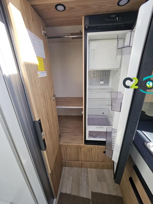 Longueur 6.20 m Largeur 2,30m Hauteur 2,90m Places assises 4 Places repas 4 Places couchages 2 - Charge utile 650 kg - Multimédia IDMEDIA - Frigo à compression 12v 138 L - Chauffage Gaz Truma