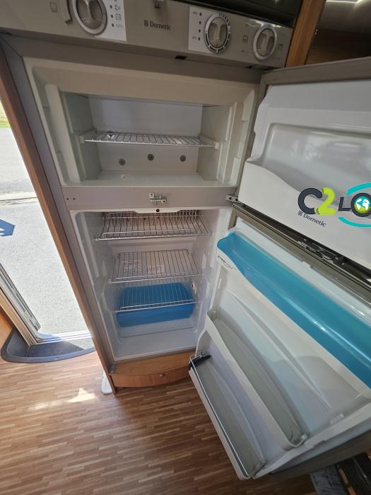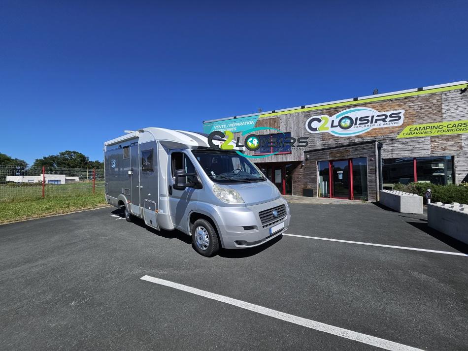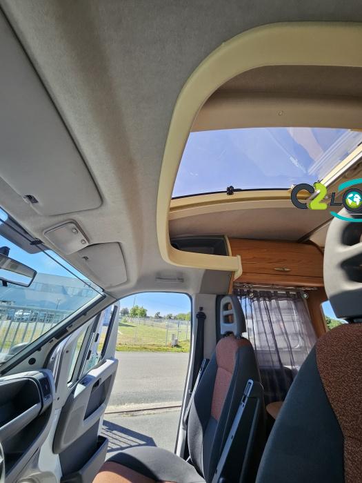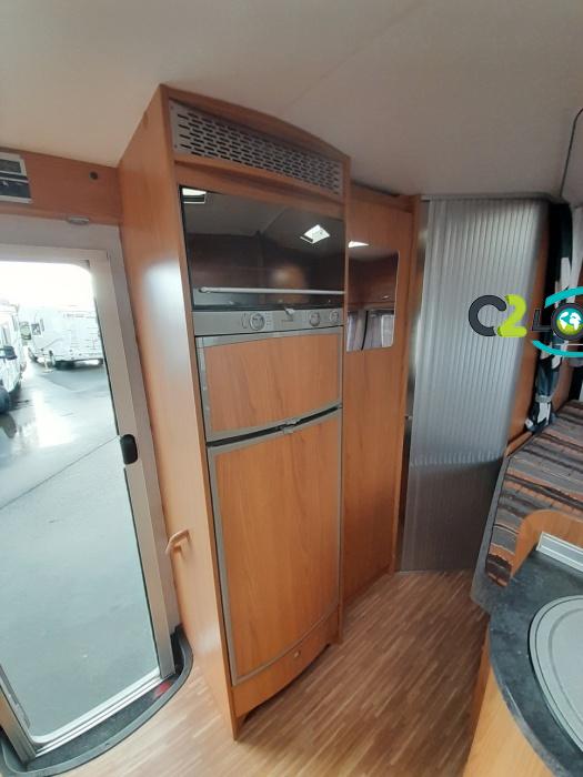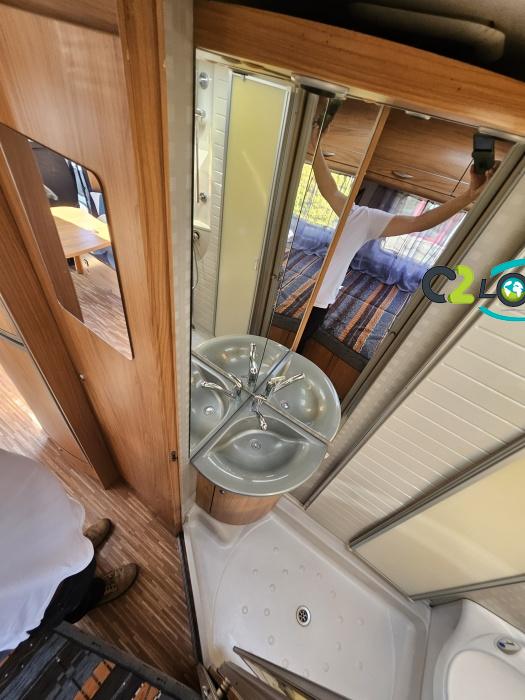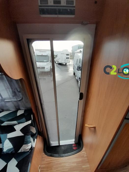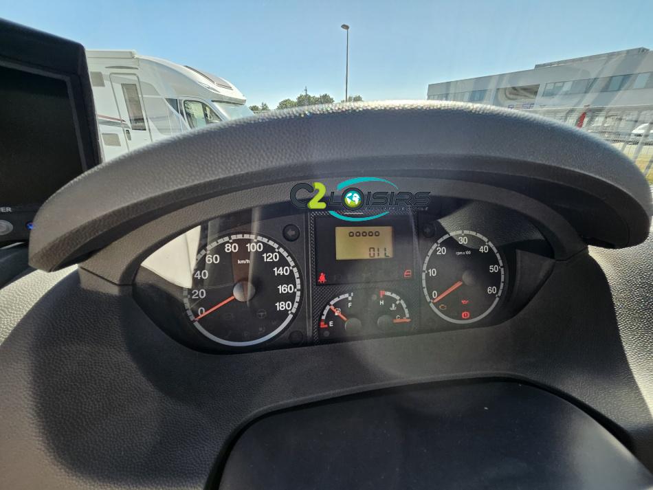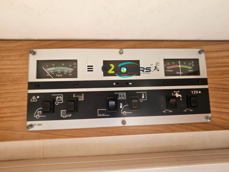 ÉQUIPEMENT Antenne TNT- Autoradio - Télévision - Store extérieur - Panneau solaire 85 W - Camera de recul - Store extérieur - Porte-vélos black - Stores remis - Lit à la française 140 x 190 cm - Climatisation cabine NOTRE AVIS Places C.G./nuit/repas : 4/4/6 - Carrosserie : Aluminium - Coin repas avec banquette face à face et sièges avants pivotants, table coulissante réglable télescopique permettant un couchage supplémentaire. - Cuisine avec réchaud 3 feux + égouttoir + réfrigérateur de 150L avec congélateur séparé + four micro-ondes + hotte - Salle de bain avec cabine de douche intégrée avec double paroi + WC à cassette et lavabo. - Soute : sous le lit à la française avec accès intérieur et porte extérieur. - Services : E.P./E.U. : 120/100 l - Propane 2 x 13 kg - Chauffage Combiné 2 en 1 (Chauffe eau + air pulsé sur gaz) Truma et chauffage de route-----