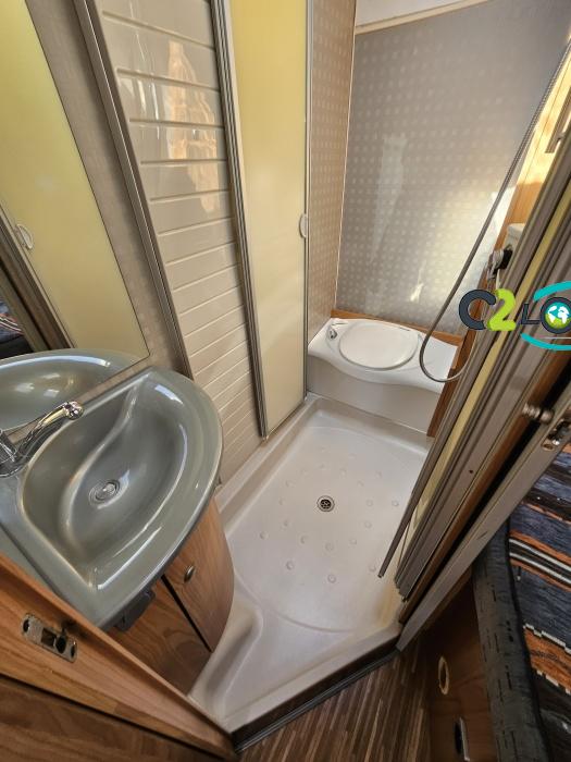 - Salle de bain avec cabine de douche intégrée avec double paroi + WC à cassette et lavabo.