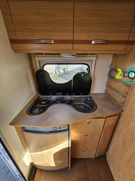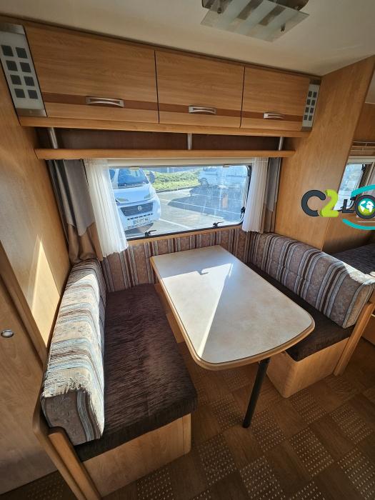 Châssis/Carrosserie Châssis et timon galvanisé Roue de secours - Stabilisateur AKS 1300 - Baies ouvrantes 6 : Eclaireur d’auvent -Toit anti-grêle - Déplace caravane Cuisine - Réchaud 3 feux + cuve évier inox - Réfrigérateur tri-mixte de 90L - Cabinet de toilette WC cassette -Lavabo et petit meuble de rangement - Dimensions lit central : 140x200 Dimensions dînette transformable en couchage : 172x102/92