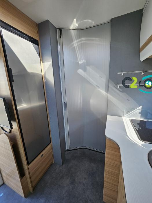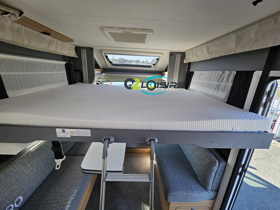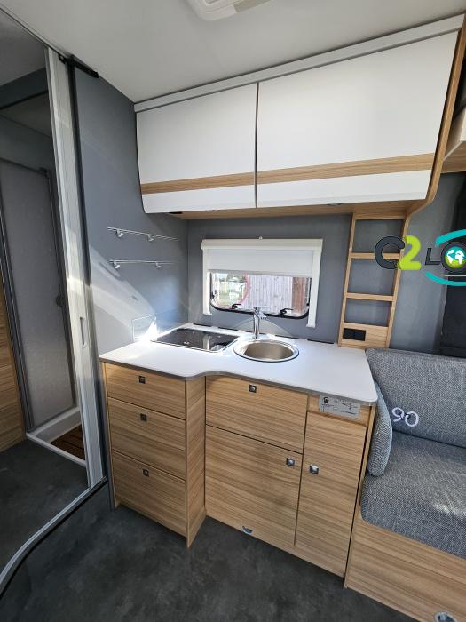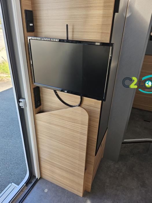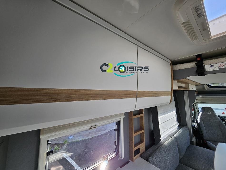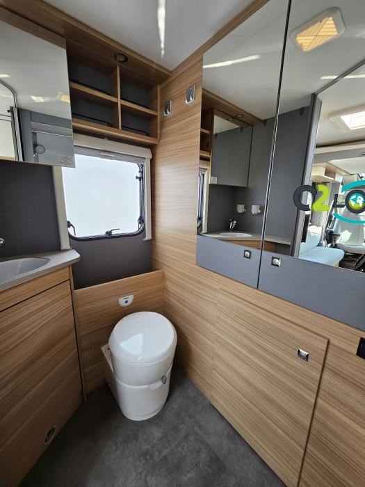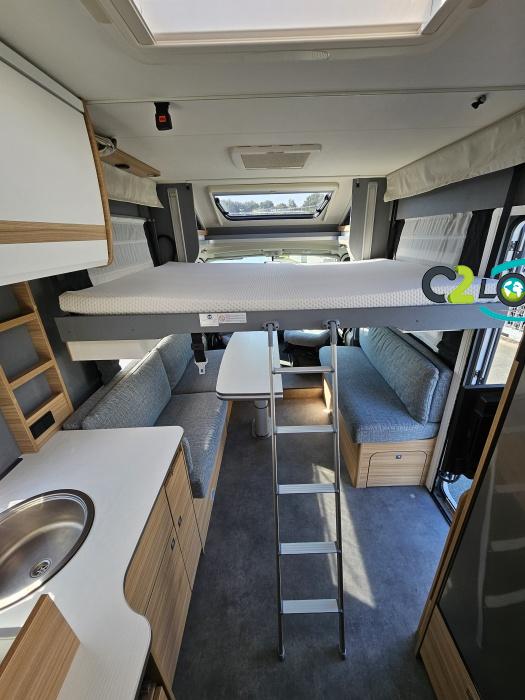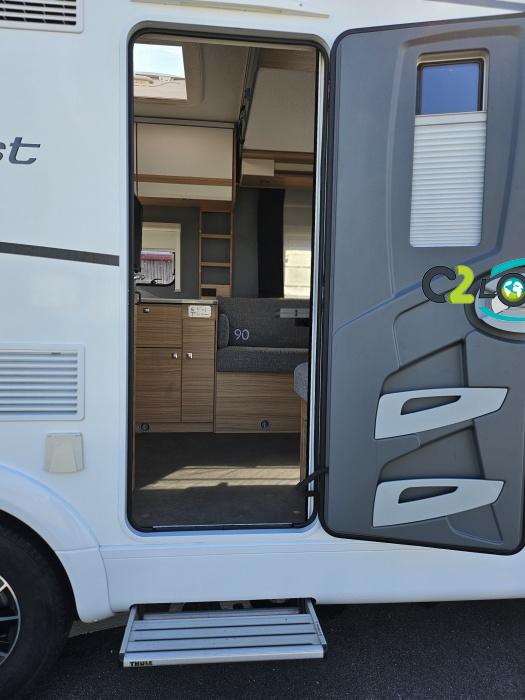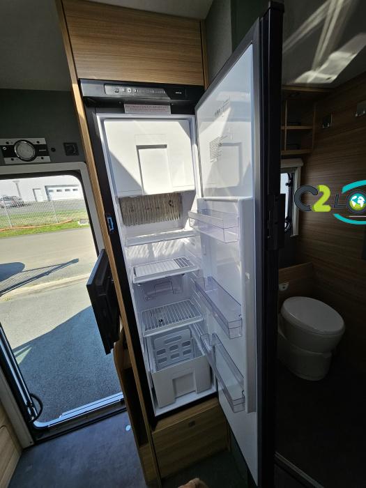 Dethleffs, modèle : Just 90 Camp 6752 PORTEUR – Citroën Jumper - Motorisation fiat 2,2 Blue HDI, 140 CV – Châssis Camping-Car - Climatisation cabine - Rétroviseurs électriques - Réservoir 90L – V.E – F.C - EBD (répartiteur électronique de freinage) - Système de freinage ABS (antiblocage des roues) - Système Electronique de Stabilité ESP - Verrouillage centralisé cabine – jantes alliage 16 pouces IMPLANTATION Cuisine : avec réchaud 2 feux - réfrigérateur 142 litres - Couchage : Lit de pavillon (2000 x 1500 cm) – Toilette spacieux : WC à cassette, Douche séparée - dressing - Banquette face à face avec table centrale - Chauffage / chauffe-eau Truma Combi 6 - grand Salon - sièges pivotants, réglables en hauteur - Occultation cabine coulissante plissée de série REMIS – grand salon 8 places - Grande soute traversante avec coffre à skie – coffre 2 bouteilles de gaz OPTIONS : Store extérieur– Caméra de recul – Panneau solaire 100w – inverseur de gaz TRUMA – Antenne hertzienne TV LCD X1 – marchepied – moustiquaire - REMIS cabine INFORMATION UTILES : L 6.95m x l 2.33m x h 2.94m - PTAC/CU (kg) : 3500/643 - Places C.G./nuit/repas : 4/4/5 Dimensions porte de soute droite/maximale 1150 x 600 Dimensions porte de soute gauche/maximale 1700 x 550