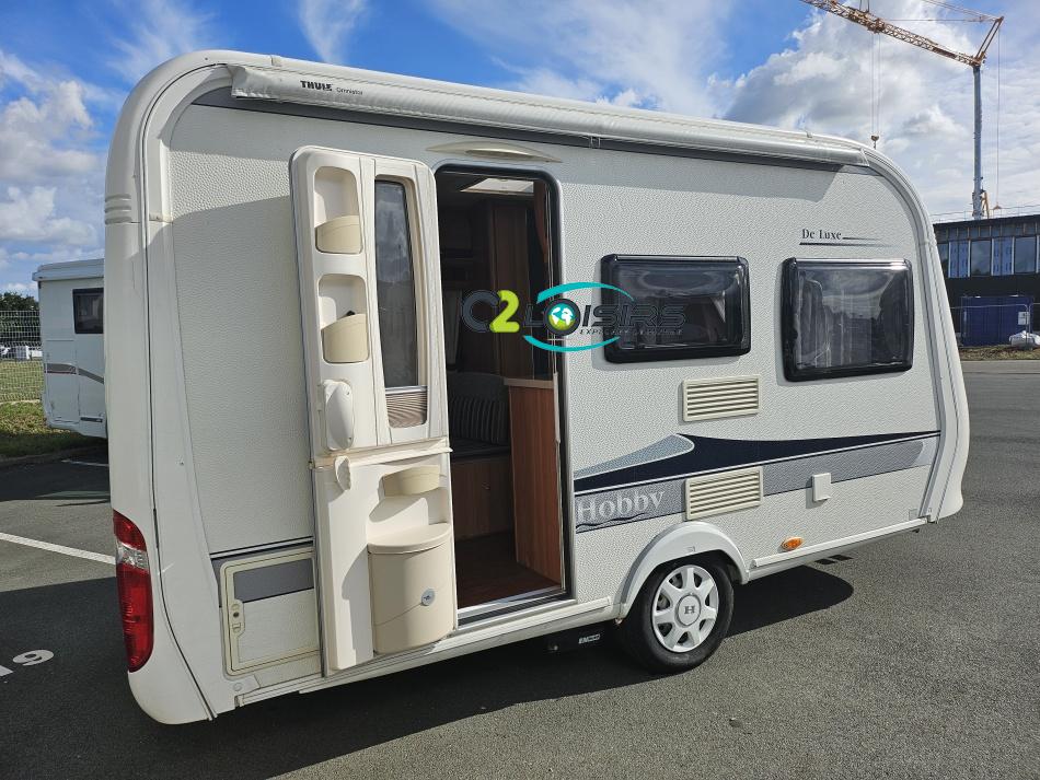 Hobby Deluxe 400 SF. ÉQUIPEMENT : Enduro moover – porte 2 Vélos sur flèche - store thule - Auvent - anti-lacets ALKO IMPLANTATION : Salle de bain avec WC à cassette - lavabo rabattable - miroir - penderie - lit pour 2 personnes transversal + dinette transformable en lit pour 1-2 personnes – penderie - (la chambre peut être fermée. Dans la partie arrière, banquette rapidement repliable en lit pour 1-2 personnes Cuisine avec réfrigérateur, freezer 112 l / tri-mixte - évier en acier inoxydable et gazerie 2 feux - électricité 12V / 220V - Réservoir d'eau propre avec pompe 12V – Réservoir d’eau usée - espace de rangement - Chauffage au gaz Trumatic avec soufflerie - Stores occultant + moustiquaires sur toutes les fenêtres + portes cellule - Chauffe-eau Truma PTAC : 1100kg --- PTAV : 1000Kg TARIFS : HORS FRAIS DE PRÉPARATION