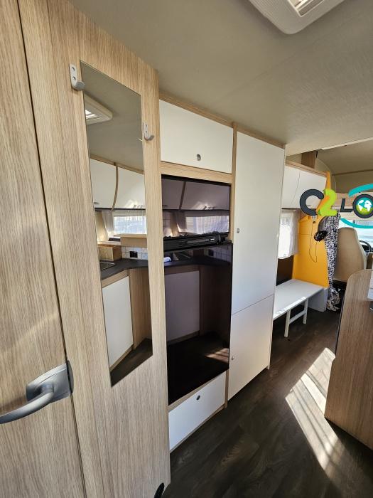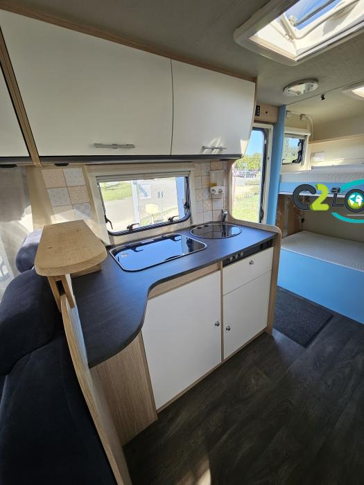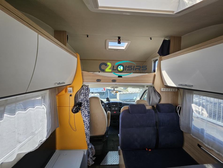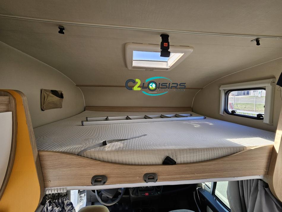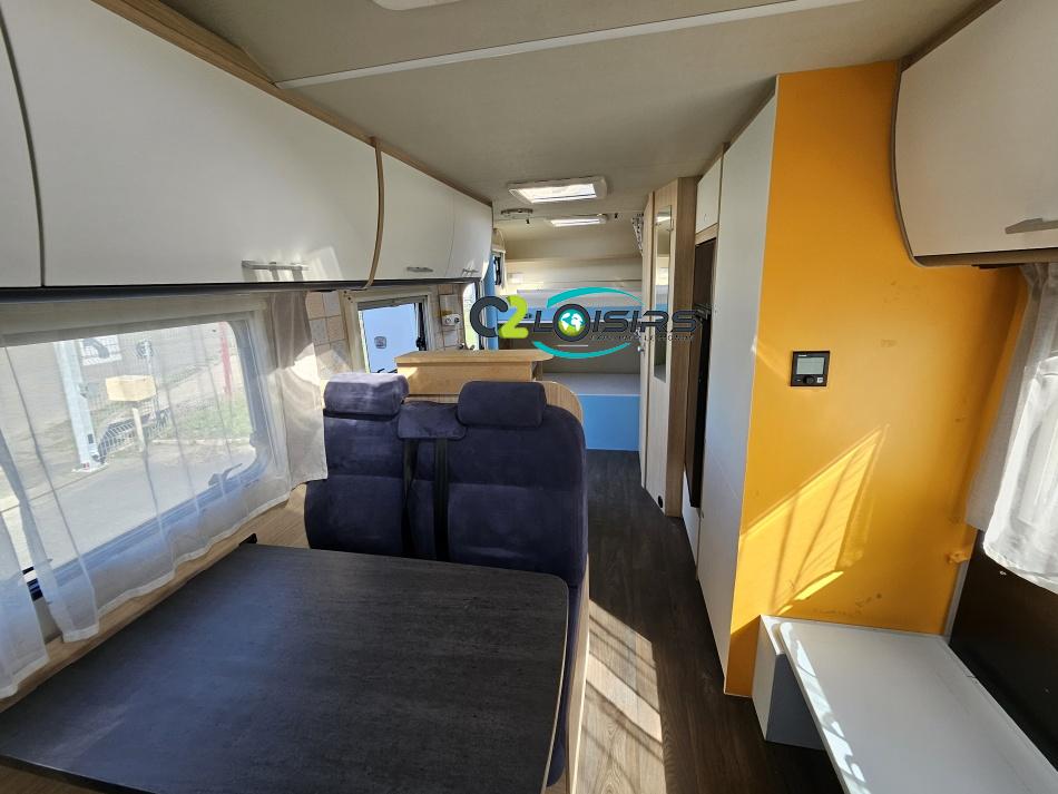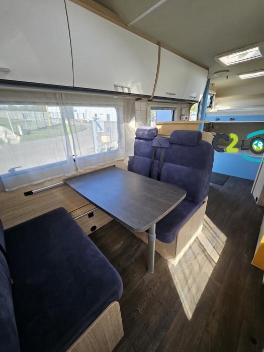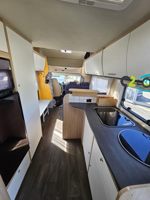 Capucine Sunlight, agencement familiale, 6 couchages, lits superposés modulable en soute, salle de bain modulable, cuisine équipée d’un grand frigo automatique, maxi salon avant avec dinette 4 personnes. ÉQUIPEMENTS Store extérieur - Lumière extérieure - Marchepieds double électriques - Porte vélos (4 vélos) - Grand frigo automatique - Panneau solaire 100W PORTEUR: Radio CD - Climatisation cabine - Régulateur + limiteur de vitesse - ASR (anti-patinage) – vitres électrique - Fermeture centralisé cabine INFORMATIONS UTILE Longueur : 7.23 M - Largeur : 2.33 M - Hauteur : 3.15 M - capucine (160×210 cm). Poids à vide : 2 879 KG -Charges utiles : 616 KG Couchages : 6 Places CG : 7 Modification mobilier Intérieur effectué, divers impacte ( nous consulter….)