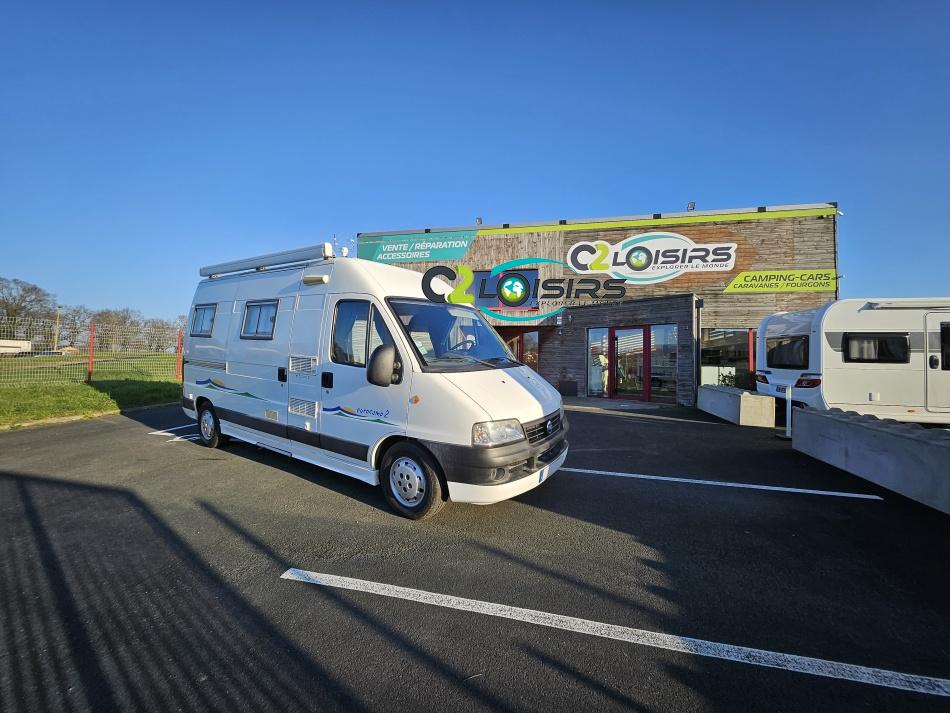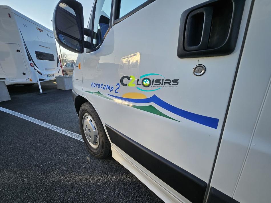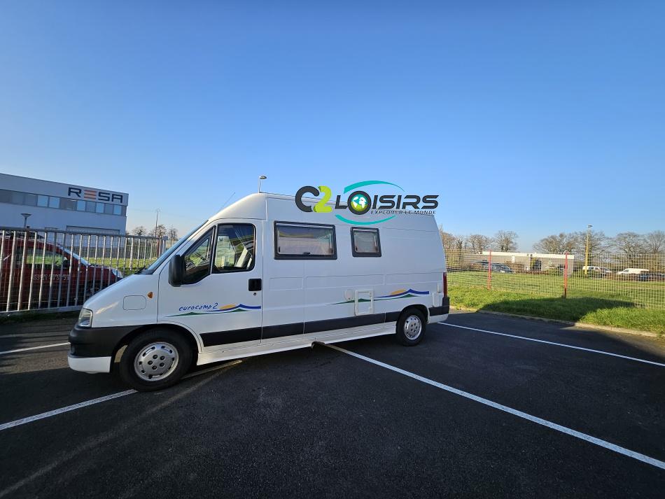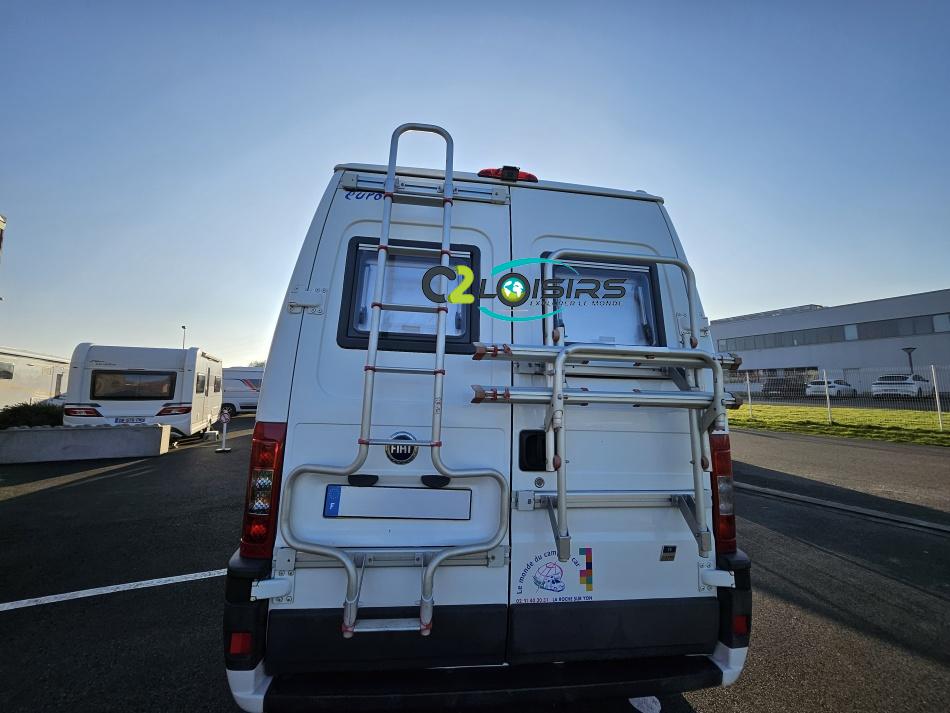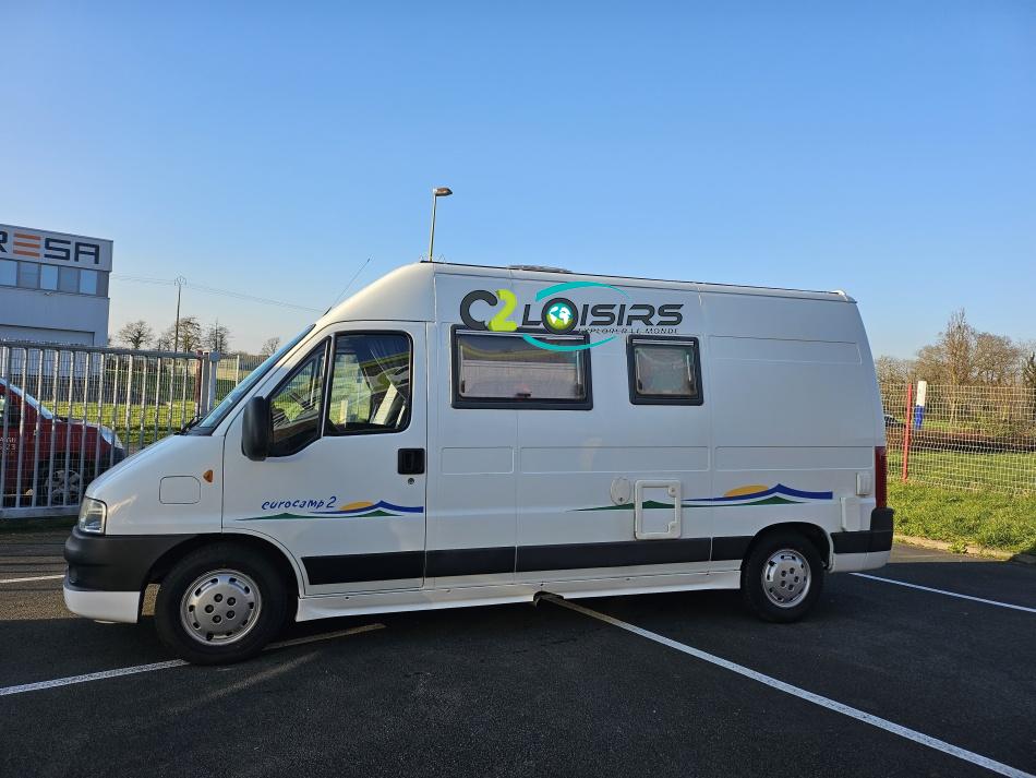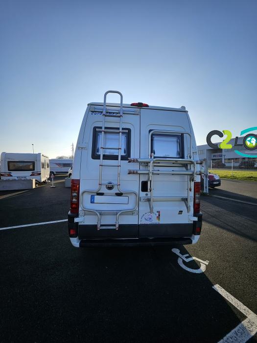 Marque : EUROCAMP trigano Type : FOURGON AMENAGE Porteur/Motorisation : Fiat Ducato 15 2,3 l JTD Puissance moteur : 110 CV DIN (81 KW) Année : 2004 Puissance fiscale : 8 CV lit transversal - évier 2 feux - couchages 3/4 - nombreux rangements - Option inclus : Porte vélos - échelle - panneau solaire 85w - chauffage carburant - marche-pied électrique - comfort pack - sièges pivotants - store extérieur - antenne hertzienne - éclairage extérieur